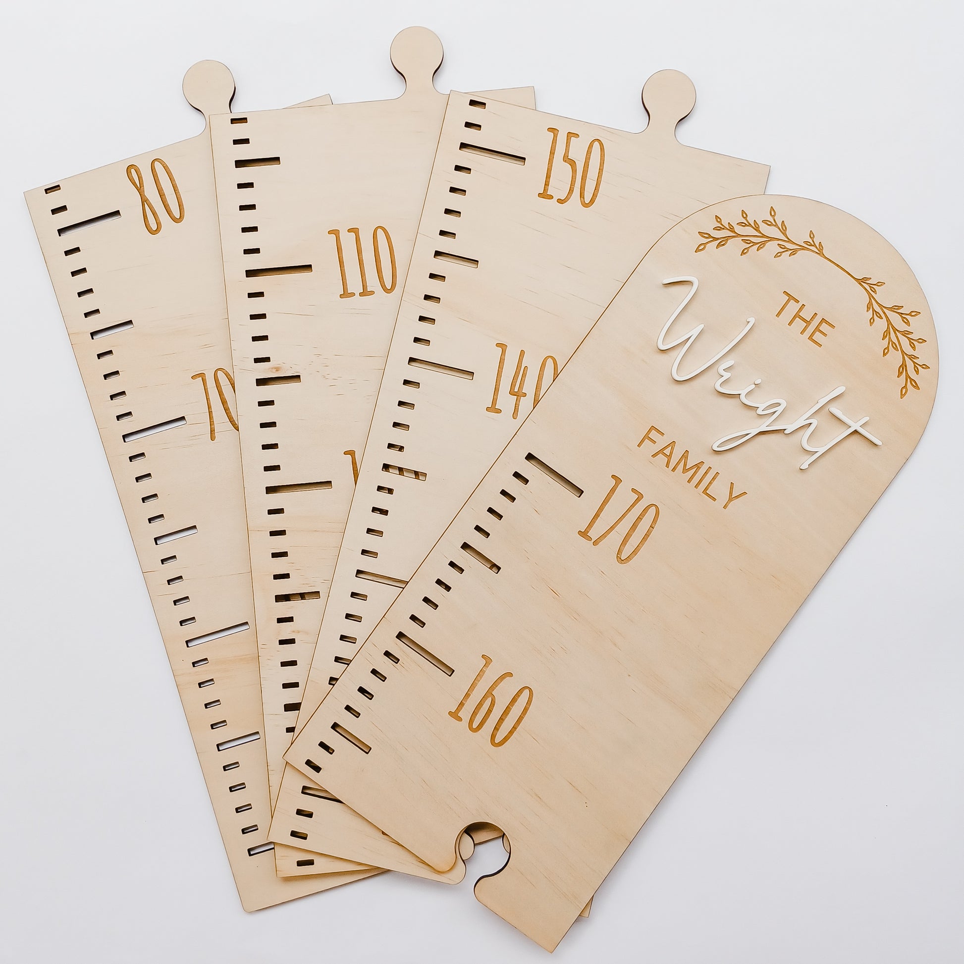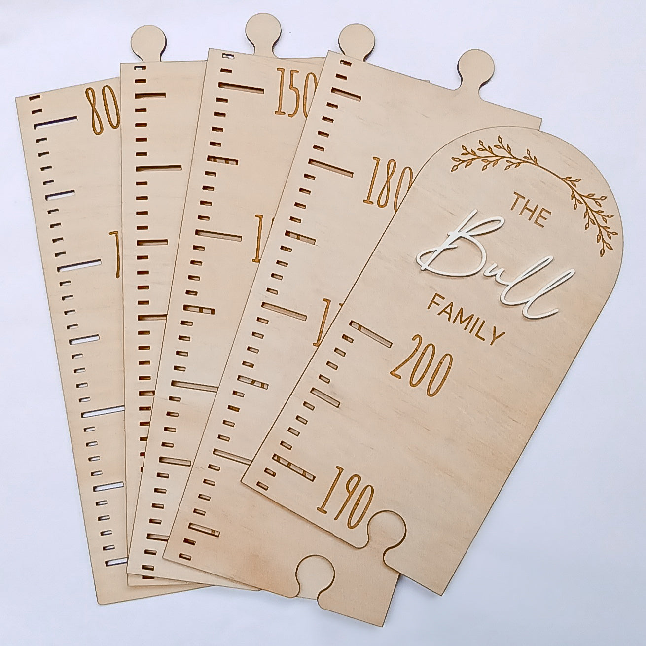 Measurements are to scale from 50-170cm or 50-200cm. The chart will come as cute puzzle pieces, with a vine design with the name or surname of your choosing engraved.